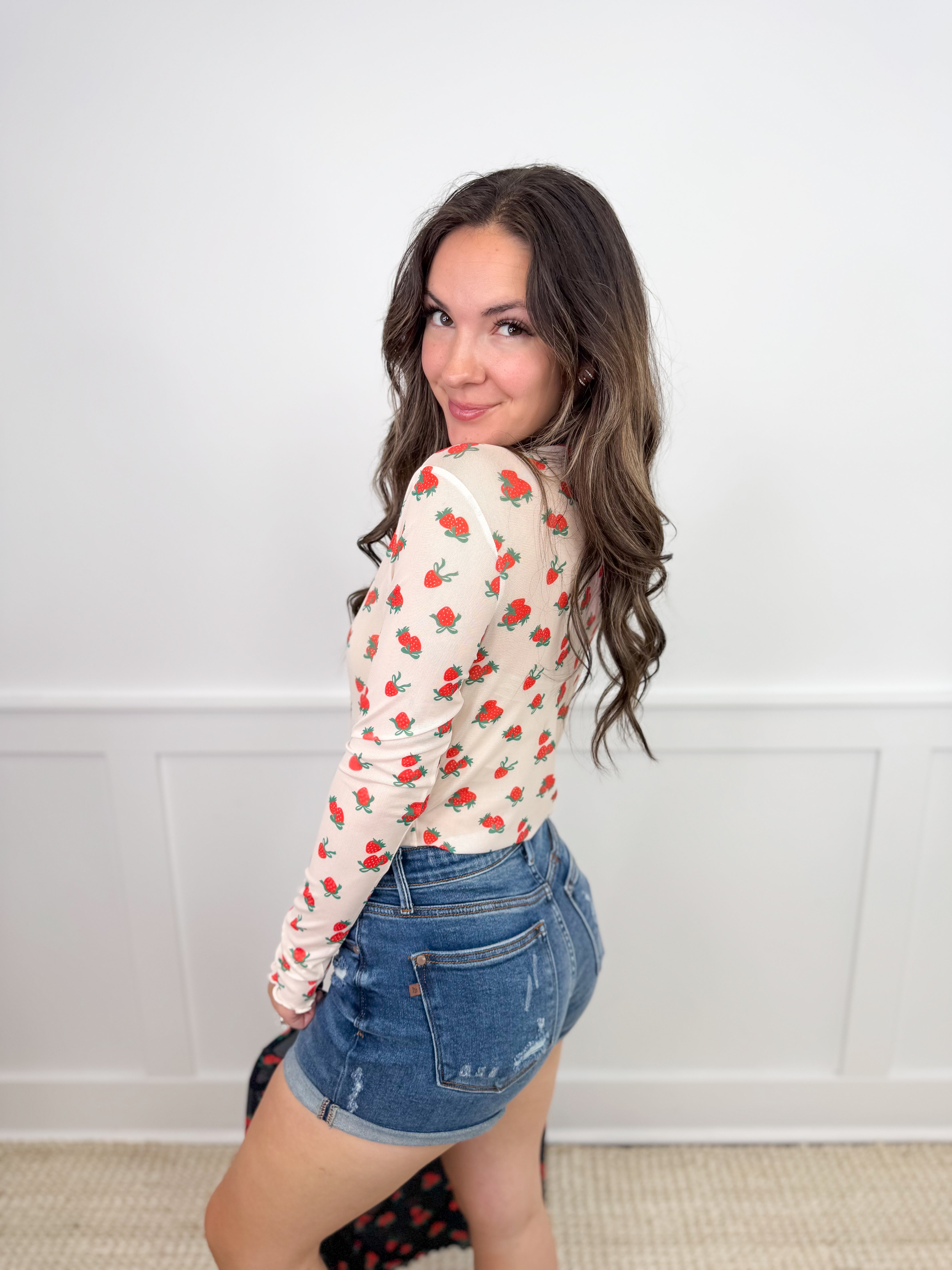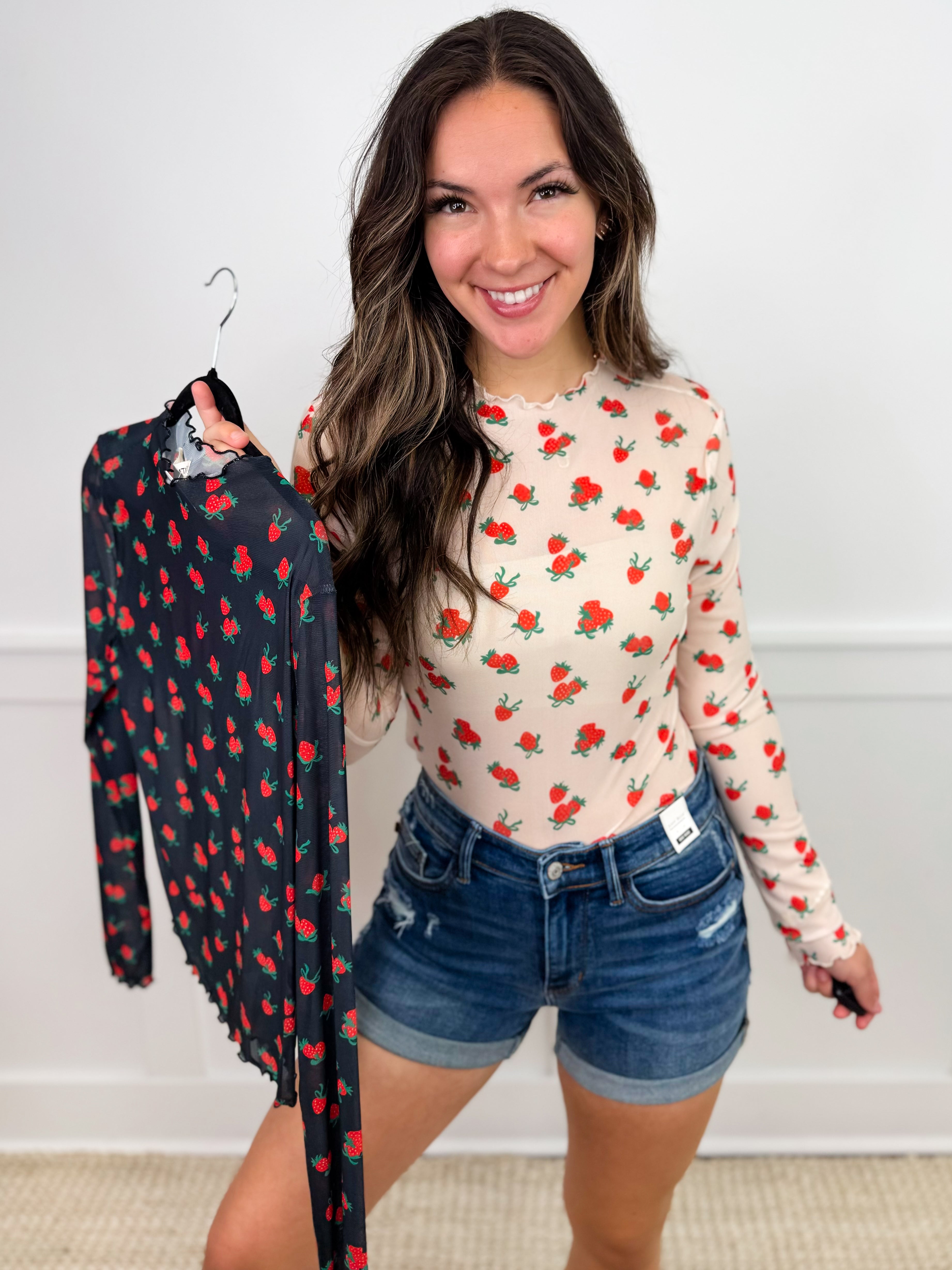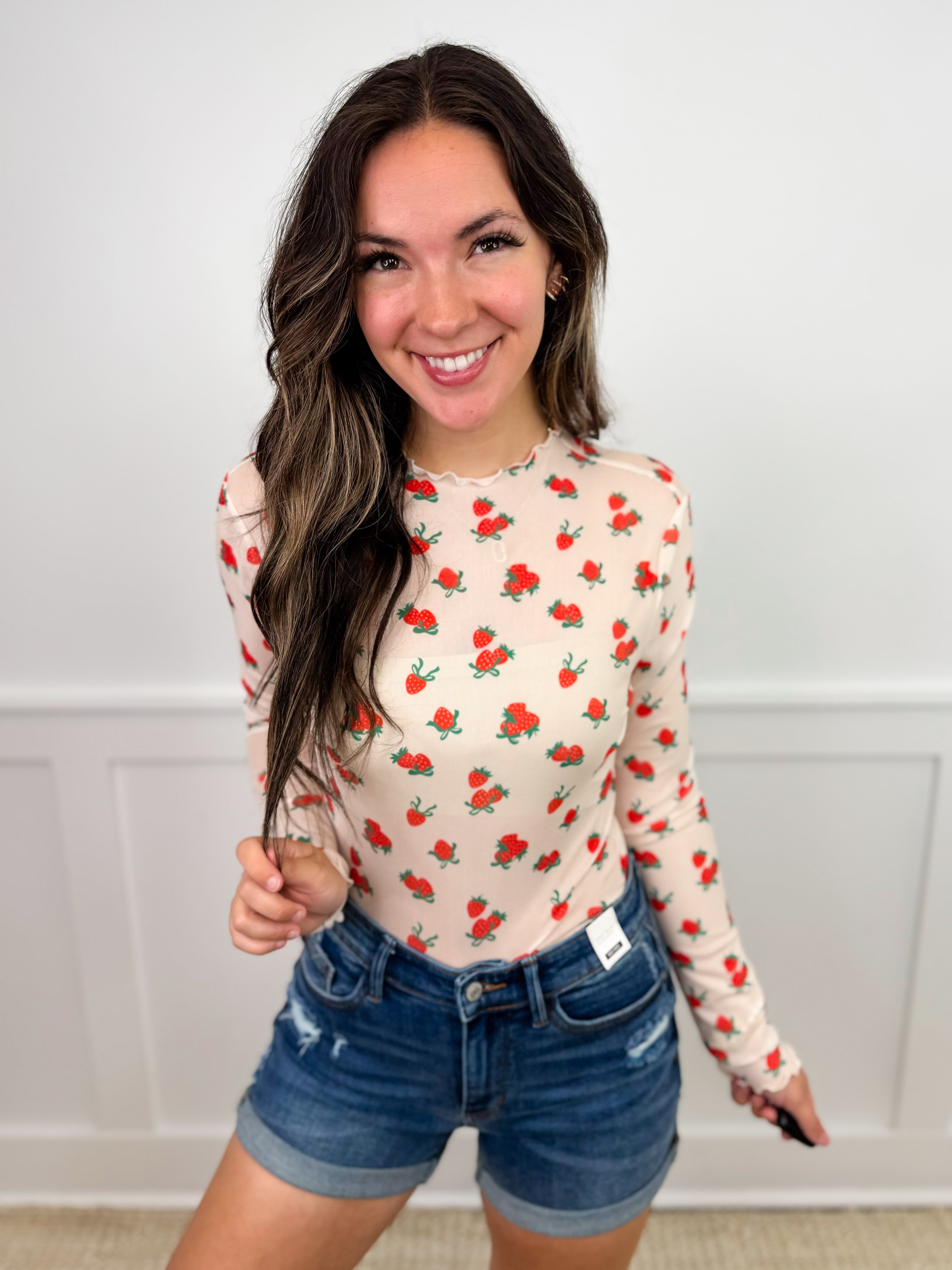 Strawberries & Bows Sheer Mesh Long Sleeve Avery Mae Top