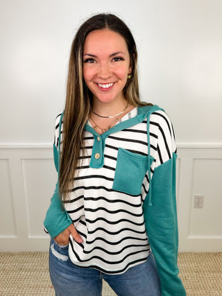 View allAnswer the Call Cotton Blend Long Sleeve Teal Avery Mae Hoodie Sweatshirt