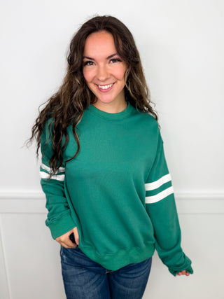 Seasons Readings Cotton Blend Long Sleeve Green Avery Mae Graphic Crewneck Sweatshirt