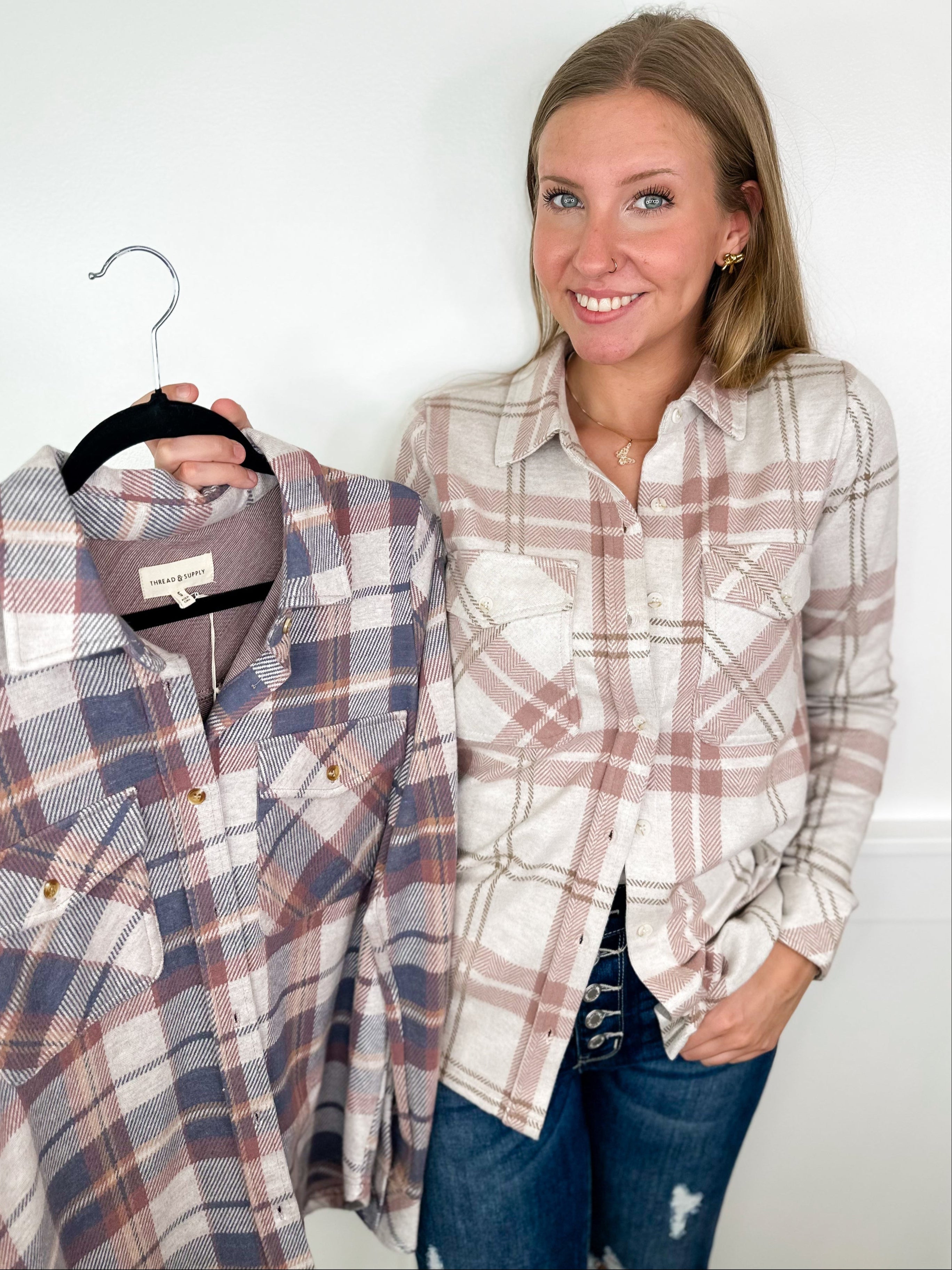 Stay cozy and stylish with the All the Days Ahead Long Sleeve Avery Mae Shacket! Featuring a playful plaid pattern, soft fleece lining, and handy front pockets, this shacket is perfect for layering on chilly days. Whether you're out and about or lounging at home, it adds warmth and charm to every outfit. Choose from two fun colors to brighten your wardrobe!