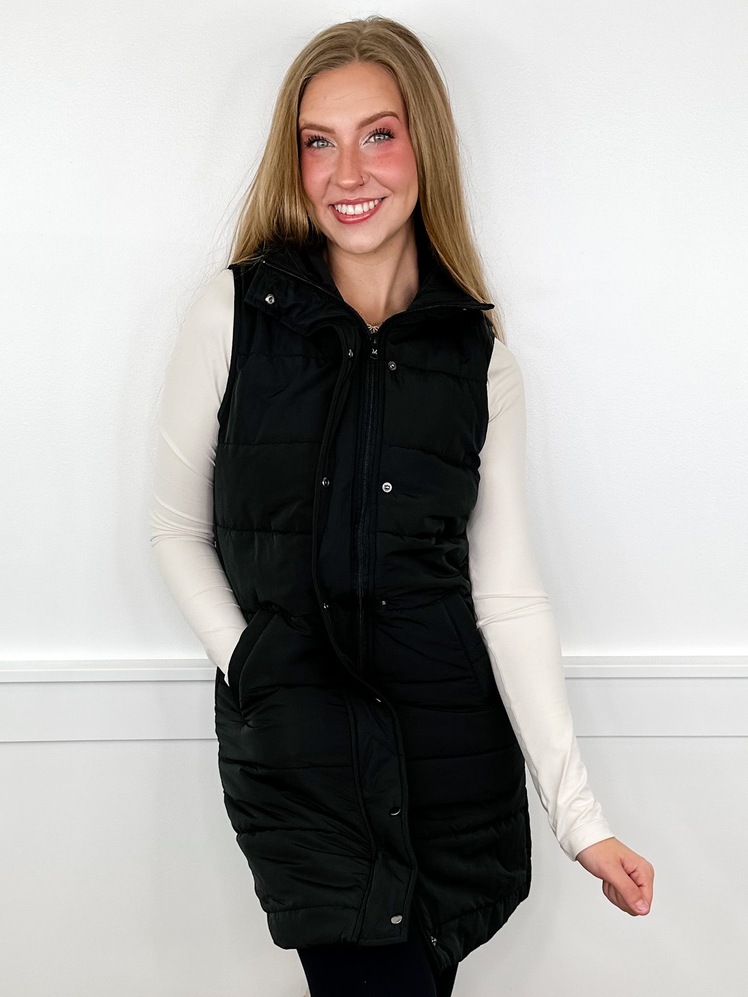 Stay warm and stylish with our Olive Avery Mae Vest. Designed for those who don't like bulky Winter coats, this long vest pairs perfectly with a heavy sweatshirt for extra warmth during the colder seasons. Say goodbye to the cold and hello to comfort.