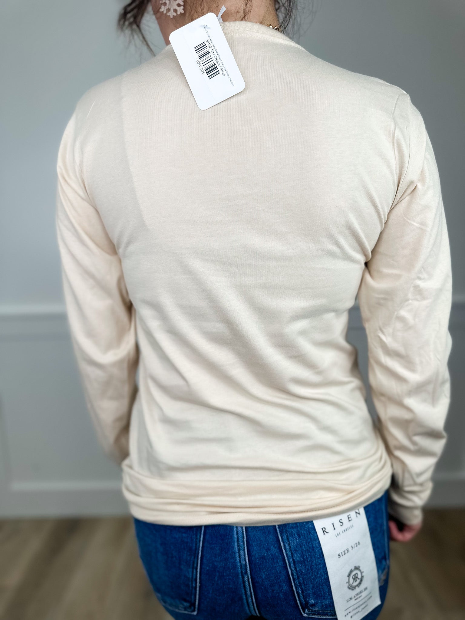 Snowy Smiles Cotton Long Sleeve Cream Avery Mae Graphic Tee Shirt