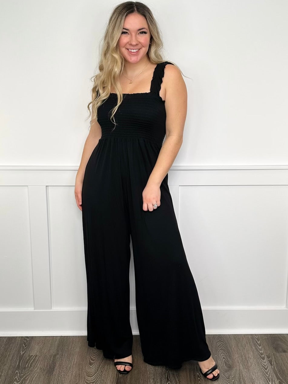 Jump into style with our White Birch Warming Up Rayon Blend Black Jumpsuit. This cozy and chic outfit will be your go-to for effortless fashion. No worries, it's back and better than ever!