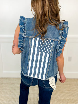 Judy Blue Eliza Distressed Mid Rise Button Fly Trouser Flare Dark Wash Jeans