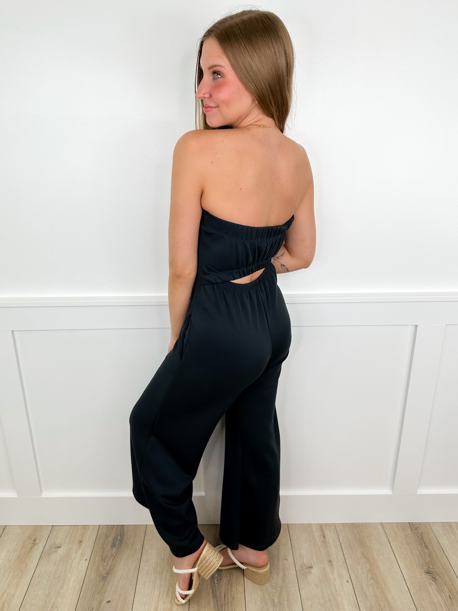 Turn heads with the Effortless Elevation Strapless Avery Mae Jumpsuit! Featuring a chic cutout on the back and a flattering fit-and-flare silhouette, this strapless jumpsuit brings playful elegance to any occasion. Available in two stunning colors, it’s your go-to for effortless style and confidence.