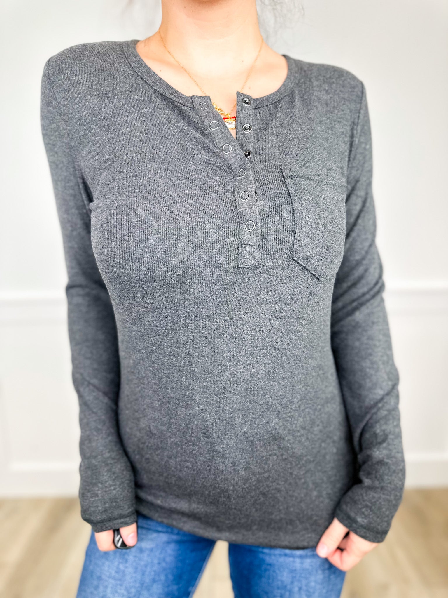 Effortless style meets cozy comfort in this Weekend Plans top. Crafted from a luxuriously soft rayon blend, it features a charming half-snap button-up front and a flattering round neckline perfect for layering or wearing solo. Slip it on and you're ready for whatever the weekend brings.