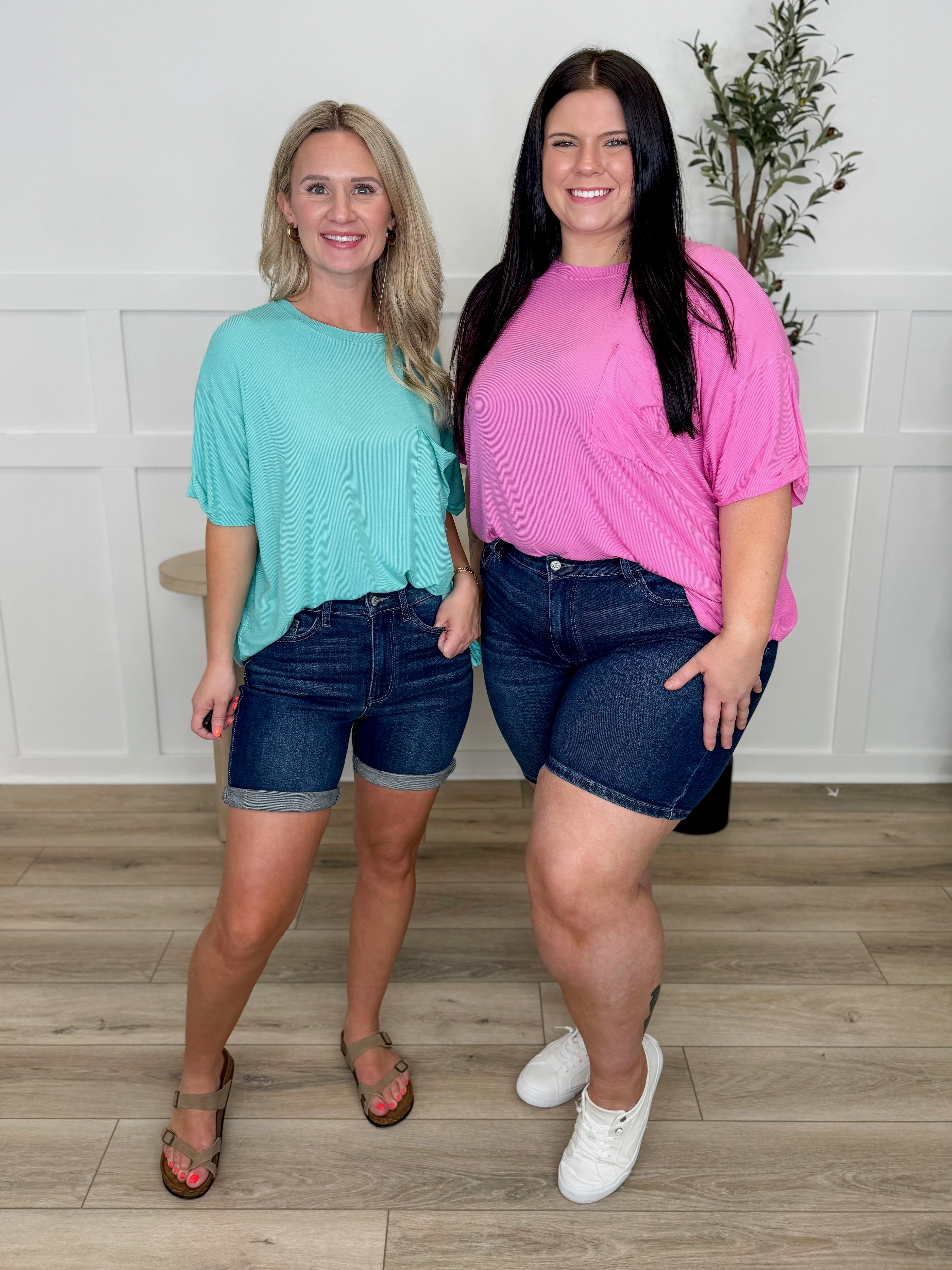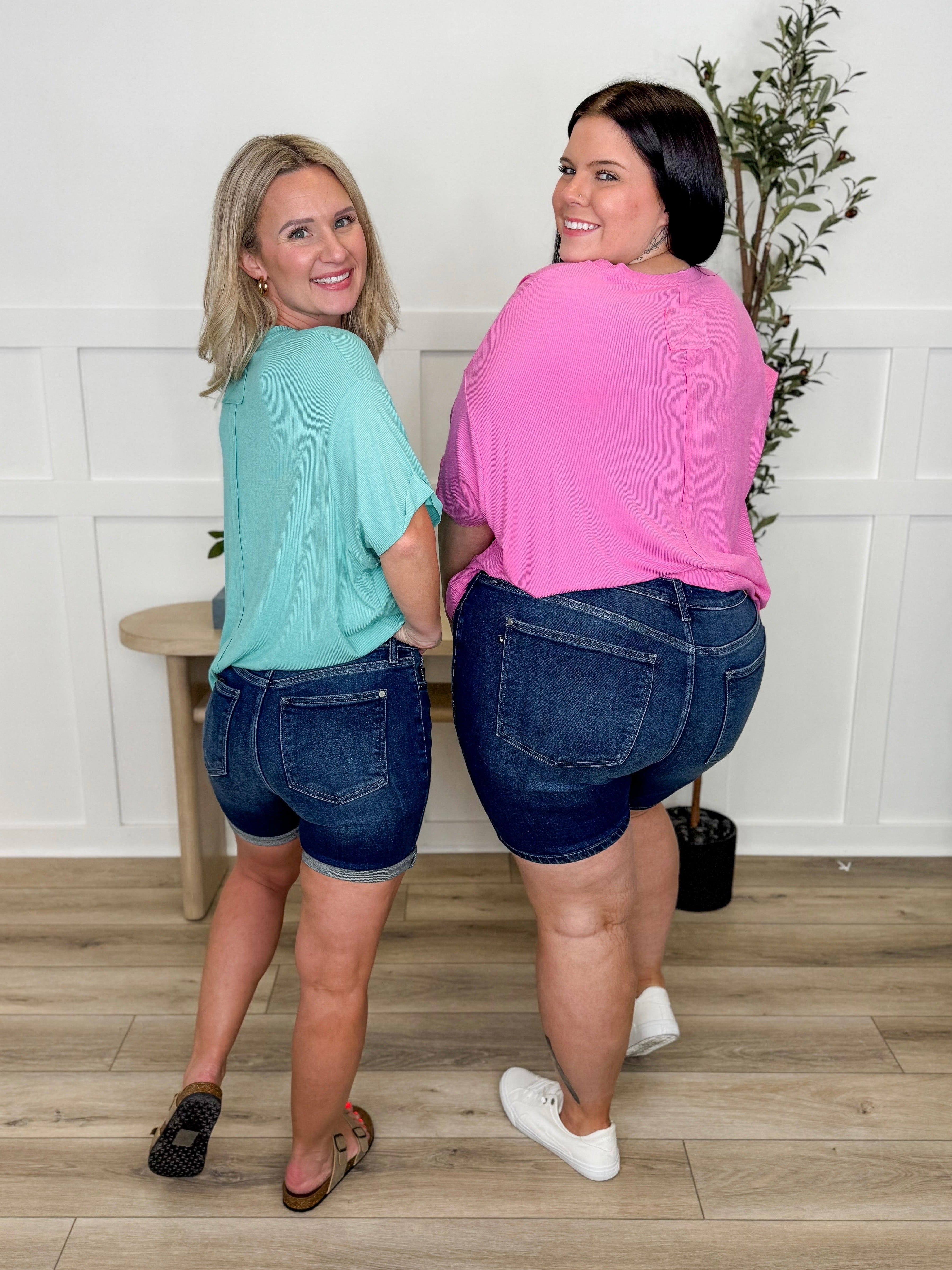 Elevate your casual wardrobe with these Judy Blue Kristen Mid Rise Dark Wash Bermuda Shorts—the perfect blend of timeless style and modern comfort. Featuring a rich, deep indigo wash paired with crisp light contrasting details, these shorts deliver classic appeal without any distressing. The mid-rise fit flatters your silhouette while the bermuda length offers versatile styling options for everything from weekend brunches to laid-back office vibes. Clean lines and quality construction make these a go-to staple you'll reach for again and again.