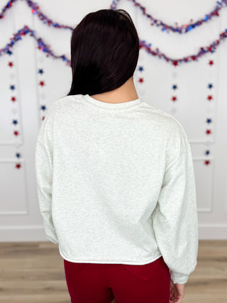 Pattern of Grace Cotton Blend Long Sleeve Ivory Avery Mae Mom Cropped Top