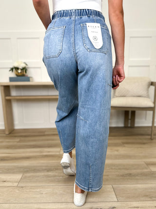 Risen Jessie High-Rise Barrel Leg Light Wash Cropped Blue Jeans