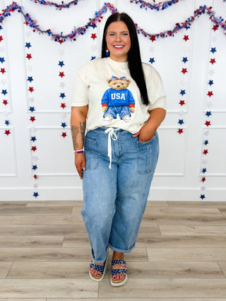 All American Teddy Cotton Short Sleeve Cream Avery Mae Graphic Tee Shirt (Comfort Colors)