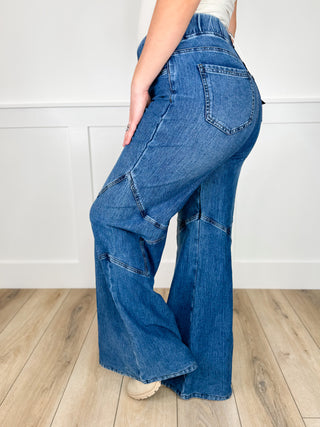 Saige Skylar High-Rise Wide Leg Jeans - Medium Wash (Pull On, Non Distressed)