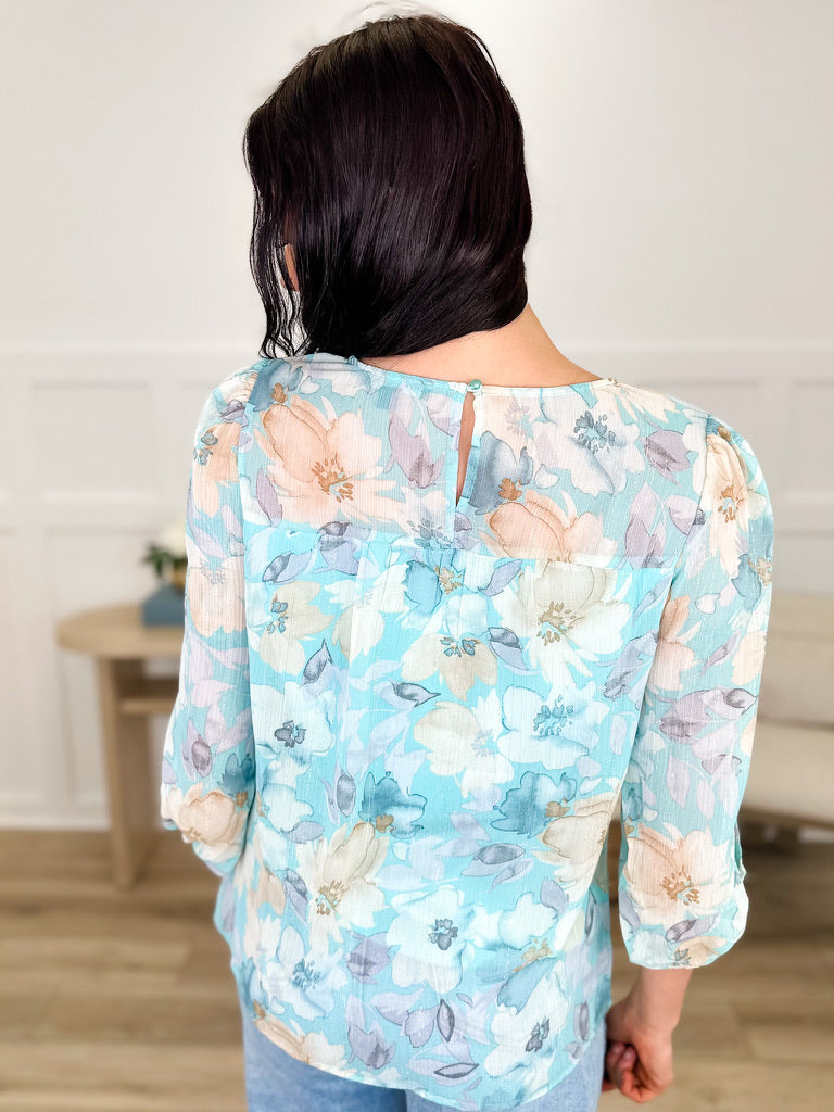 Slip into effortless elegance with this lightweight top featuring a flattering scoop neck and shimmering glitter lurex thread that catches the light with every move. The airy 3/4 sleeves keep things cool and breezy, while the subtle sparkle adds just enough pizzazz to turn heads. Perfect for those days when you're saying nothing but looking everything—this blue beauty is your go-to for laid-back glamour that doesn't take itself too seriously.