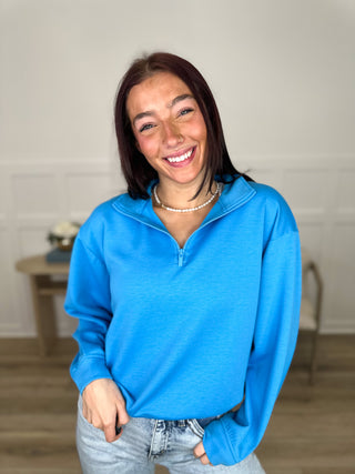Zenana Basic Say You Can Long Sleeve Quarter Zip Mom Cropped Top - Multiple Colors