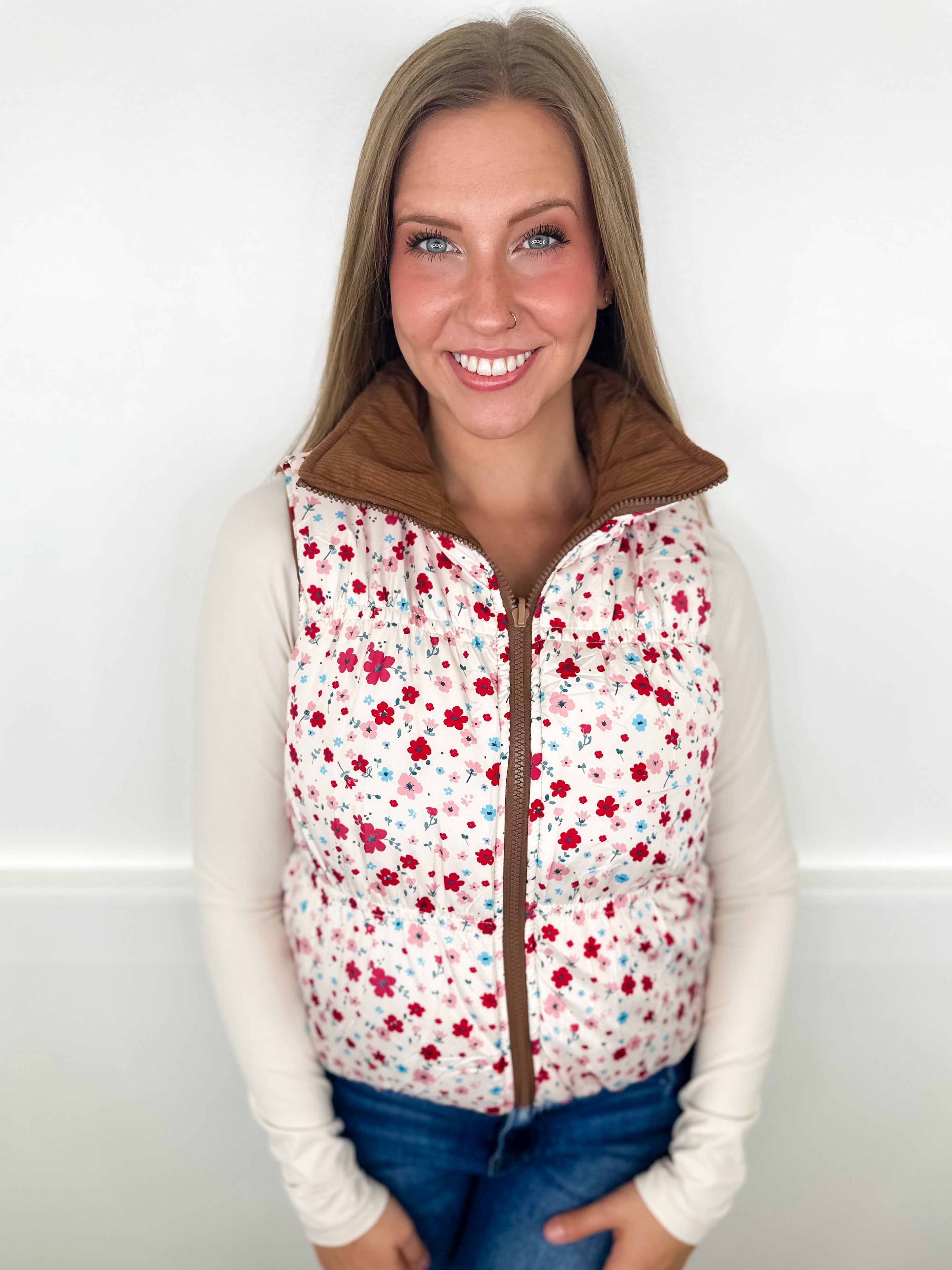Add a burst of fun to your wardrobe with the Double the Fun Ribbed Reversible Avery Mae Puffer Vest! Featuring a playful floral design on one side and a cozy ribbed texture on the other, this reversible vest lets you switch up your style in an instant. Lightweight yet warm, it’s perfect for layering on chilly days while keeping your look fresh and vibrant. Double the patterns, double the fun!