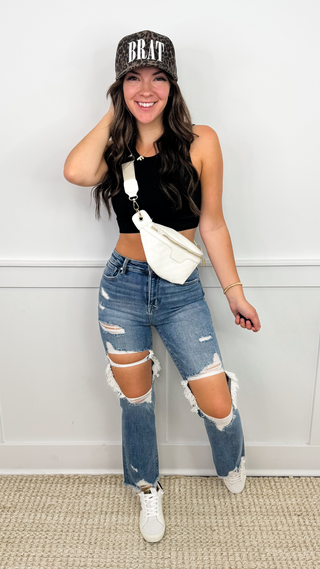 This Basic Effortless Fun Ribbed Black Avery Mae Cropped Tank Top combines playful style with ultimate comfort. Its ribbed texture adds a fun twist, while the stretchy fabric moves with you for all-day ease. Soft to the touch, this cropped tank is perfect for layering or wearing solo on sunny days.