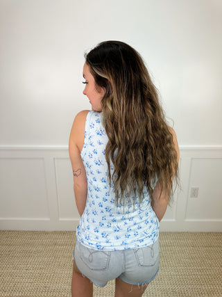 Beautiful Blooming Day Ribbed Blue Avery Mae Tank Top