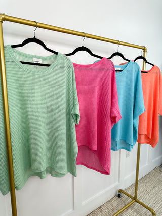 Transform your wardrobe with our Conquer it all Knit Short Sleeve Avery Mae Top! Featuring an open knit design, round neck, and flowy silhouette, this top will have you feeling confident and comfortable. Available in 4 stylish colors! Conquer your style game with this must-have top!