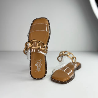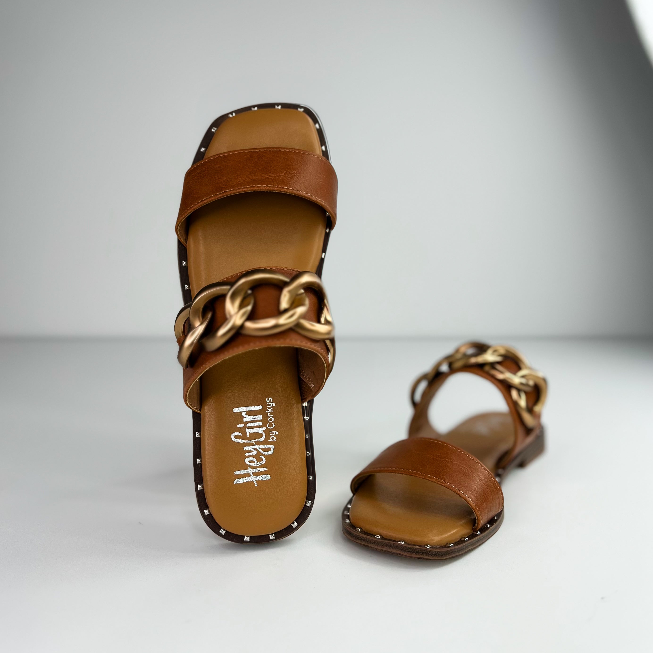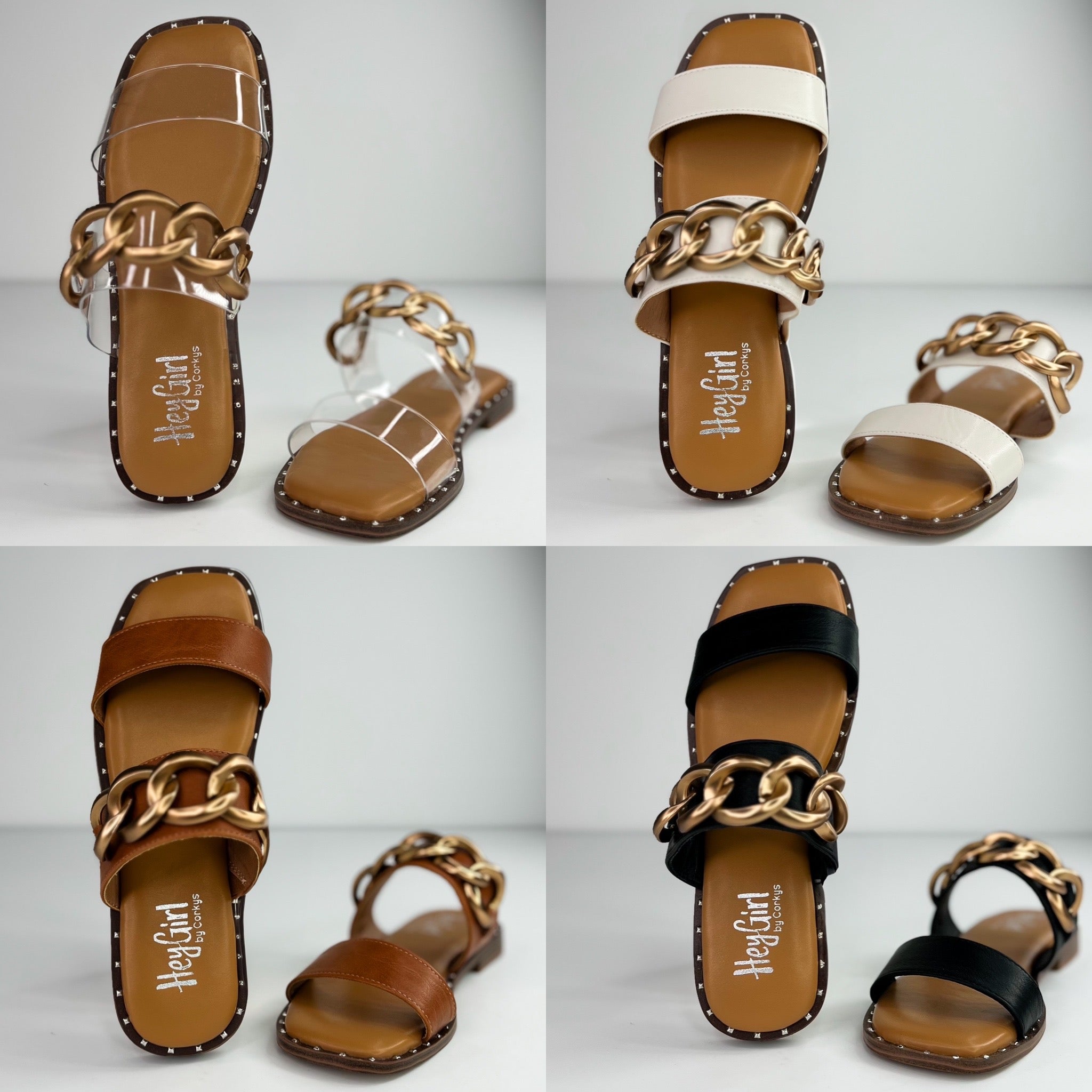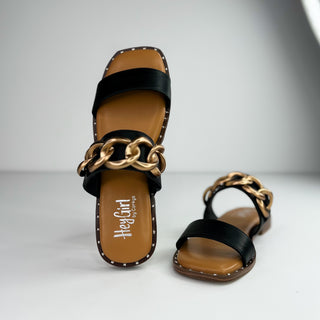 Slip into style with Corky Caught my Flight sandals! These two strap sandals feature a bold chunky 'chain' accent and studded outline for a modern yet edgy look. Available in 4 colors, these sandals will have you stepping out in style with ease.