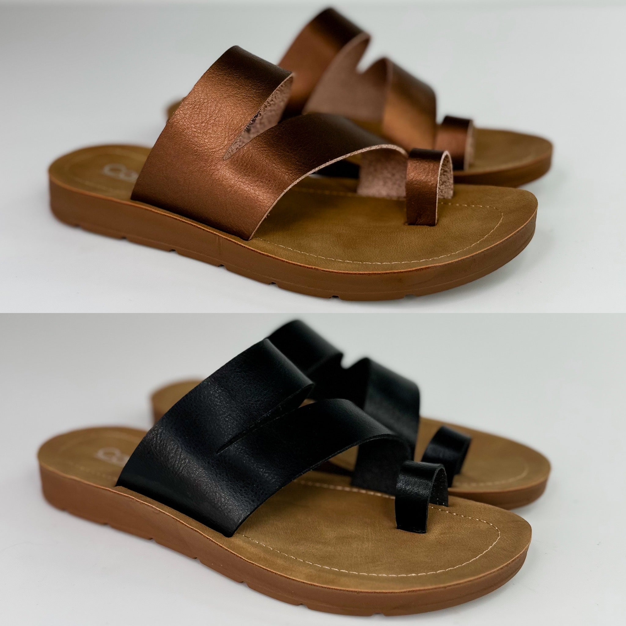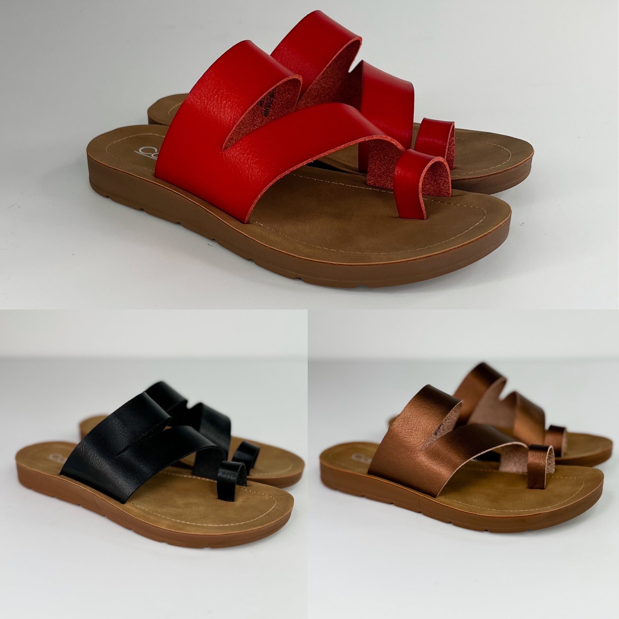 Ditch the guilt and step into style with Corky Living's faux leather sandals! These strappy sandals feature a unique toe strap and can easily be dressed up or down. Available in three colors, these sandals will add a touch of playfulness to your wardrobe.