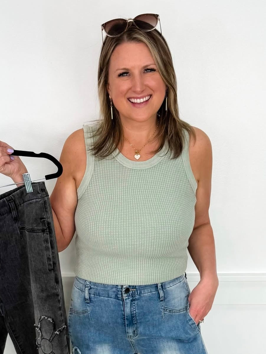 Get ready for a stylish summer night out with our Going Out Tonight Cotton Avery Mae Tank Top! Featuring a waffle knit design, this tank top will elevate any outfit. Pair it with your favorite dark wash denim and you'll be ready to turn heads in 7 stunning colors!