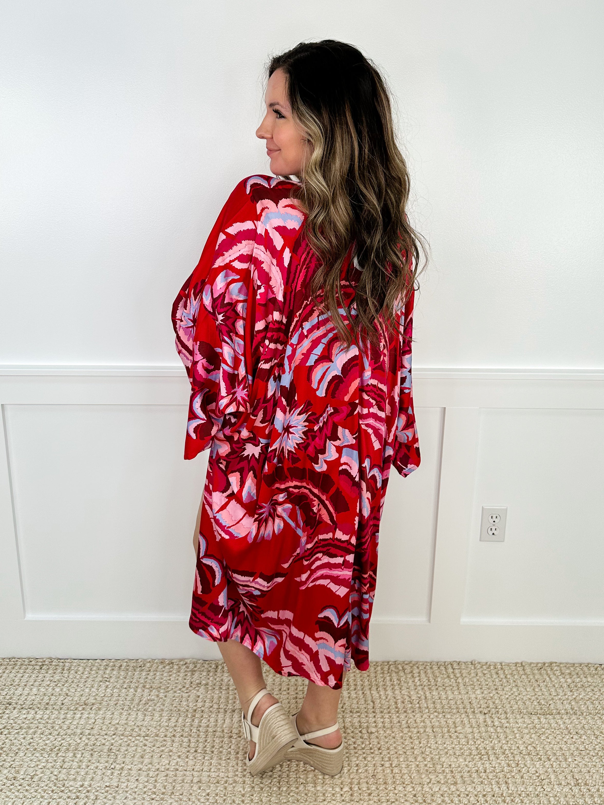 Get ready to feel the breeze with our lightweight long sleeve Avery Mae Kimono! Perfect for any day and ideal for a cute tropical getaway. A must-have addition to your wardrobe!