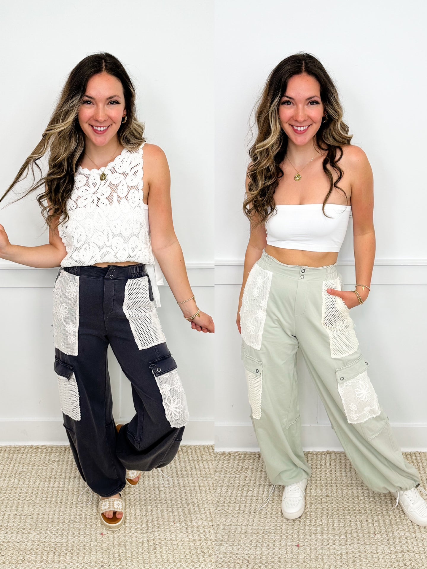 Experience ultimate comfort in our Great Day Vibes High Rise Cotton Bottoms! These playful pants feature a stretchy elastic waistband that hugs without squeezing, plus adjustable ankle elastics for your perfect fit. Practical pockets keep your essentials close, while the eye-catching open knit detail adds a touch of fun flair. Available in two fabulous colors to match your mood!