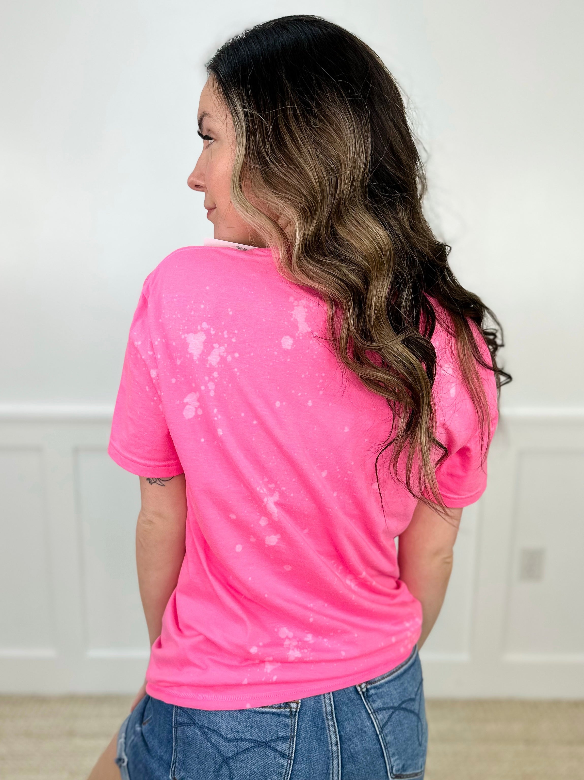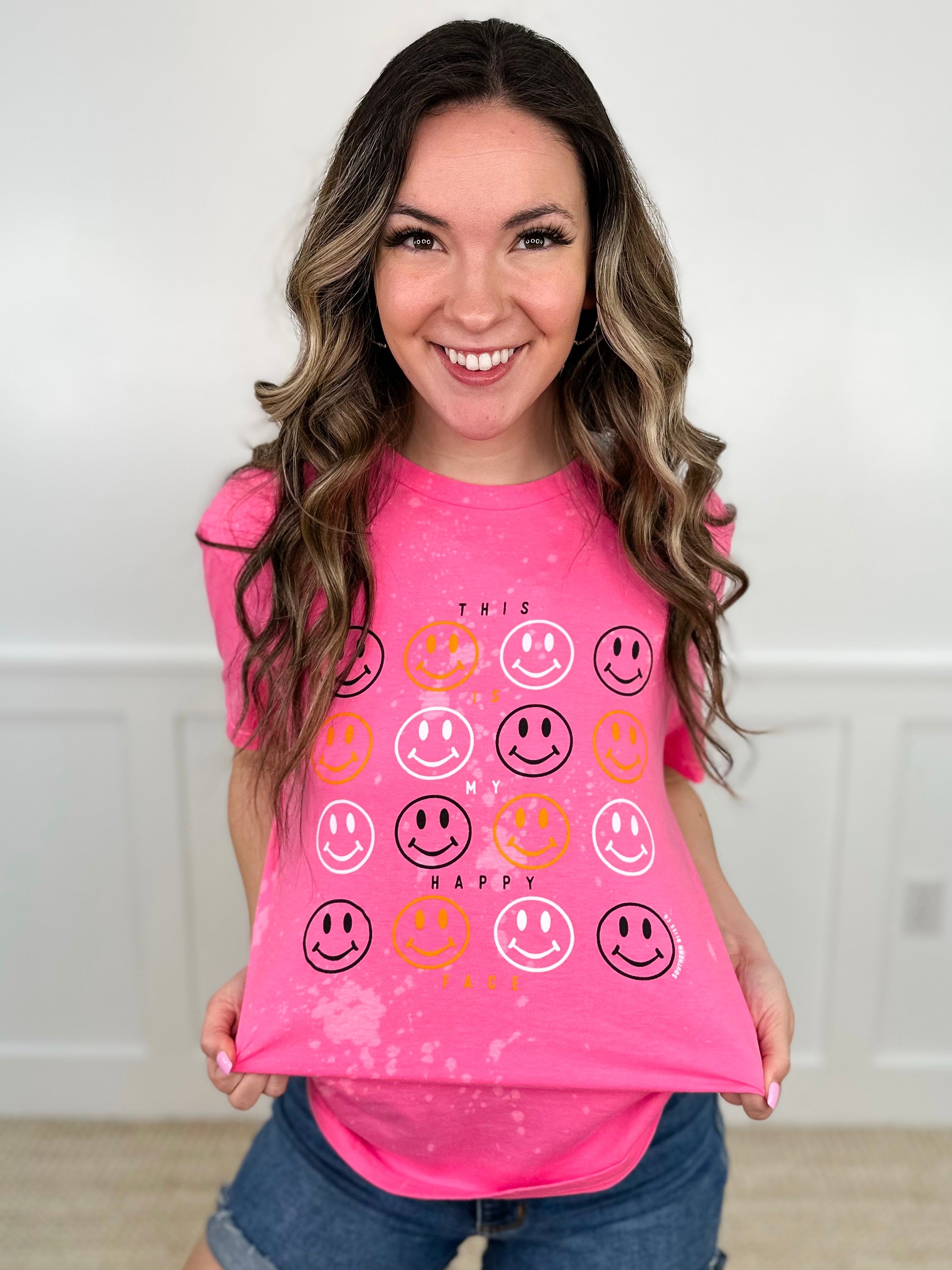 Spread happiness with our My Happy Face Bleached Short Sleeve Pink Avery Mae Graphic Tee Shirt. Perfect for summer, this tee is cute, vibrant, and has great vibes.