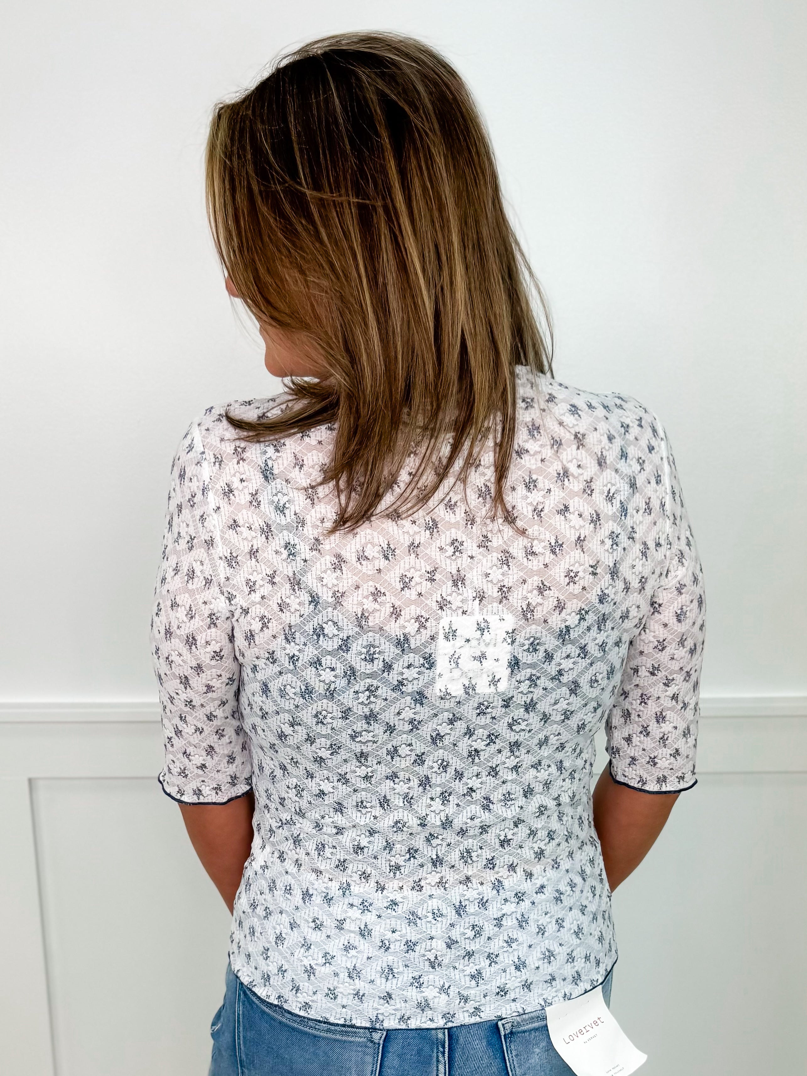 Get ready to elevate your wardrobe with our Just the Right Time Lace 3/4 Sleeve White Avery Mae Top! This must-have top features a beautiful floral print and is perfect for any day of the week. With delicate lace and comfortable 3/4 sleeves, you'll feel confident and stylish all day long.
