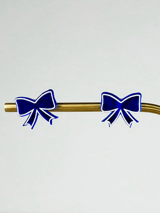 Add a playful touch to your outfit with these Outline of America Blue Stud Earrings. These snazzy blue earrings feature a white outline bow, adding a pop of quirky and unique style. Made of durable acrylic, these earrings are perfect for any occasion.
