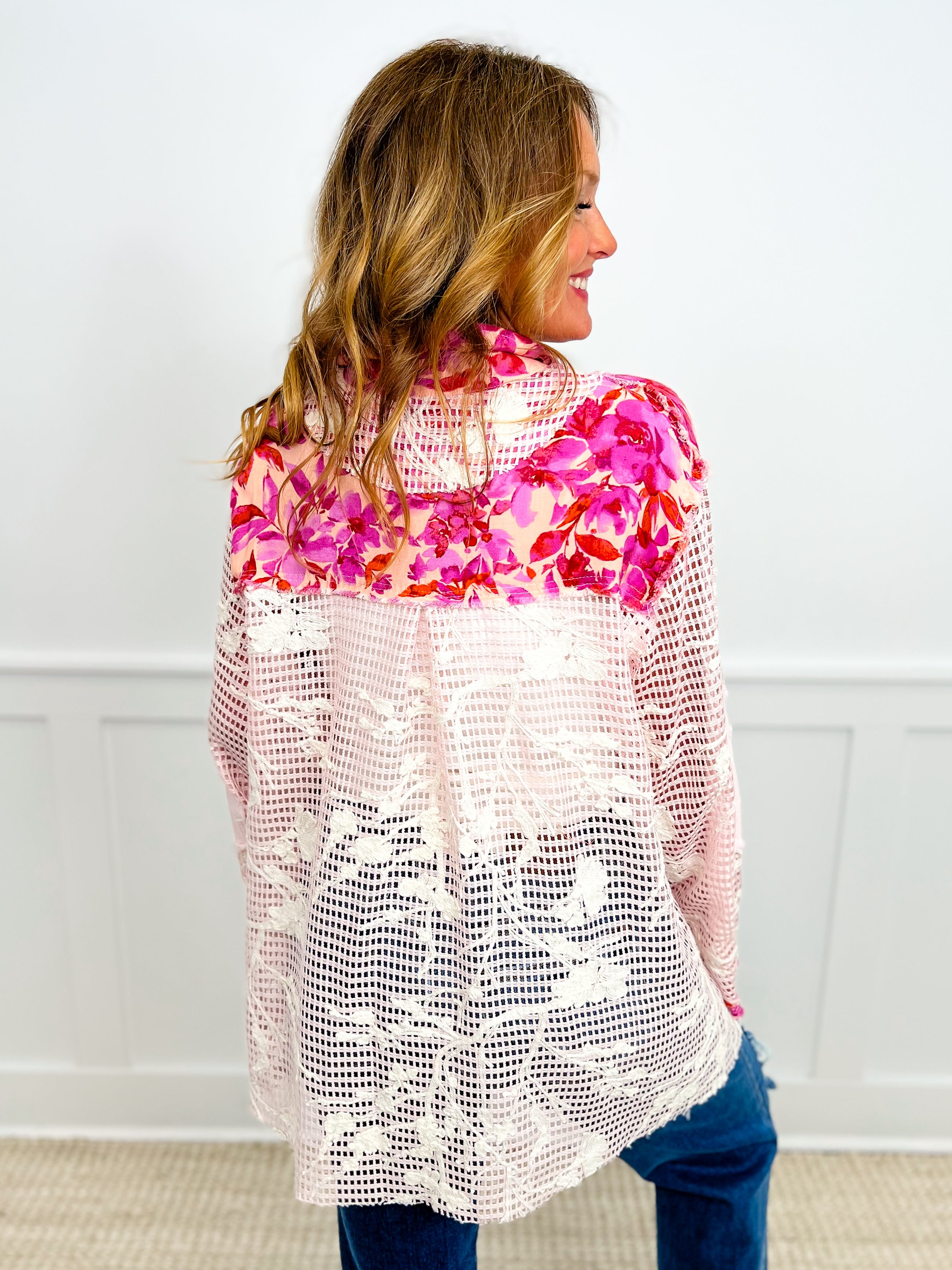 Embrace effortless charm with our POL Pocketful of Petals Top. This delightful top combines classic style with a touch of playful elegance, featuring a vibrant pink hue adorned with a beautiful floral print. Crafted for comfort and versatility, this shirt boasts a timeless button-up front and practical front pockets, perfect for adding a relaxed, yet polished touch to any outfit. Whether you're heading to brunch or enjoying a casual day out, the Blossom Button-Up Shirt is your new go-to for cheerful style.