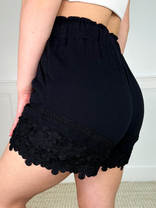 Transform into a dancing queen with our Say You Wanna Dance High Rise Cotton Avery Mae Shorts! These comfortable shorts feature delicate lace detailing at the cuffs, adding a touch of elegance to your look.