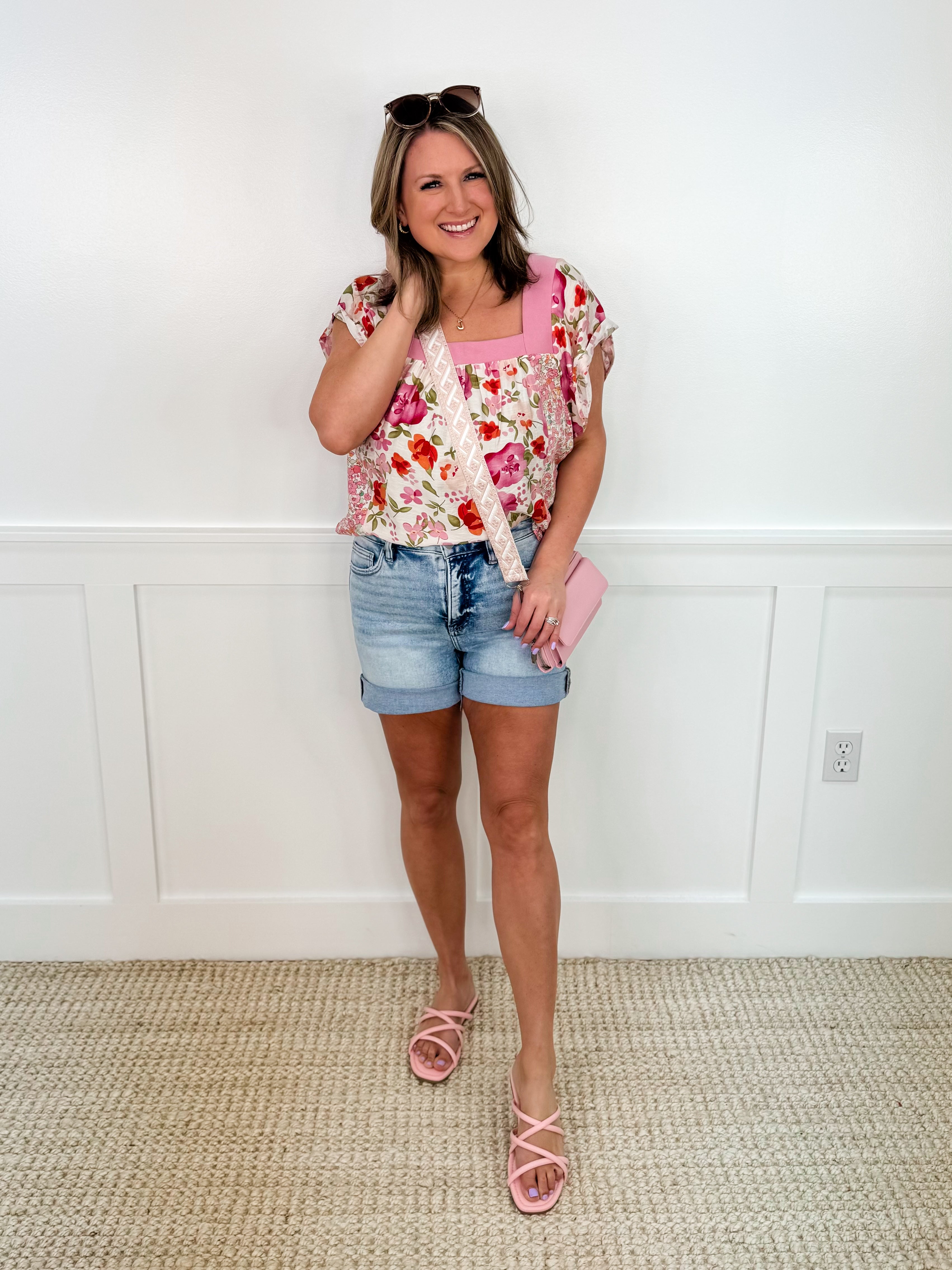 Stay stylish and comfortable on those hot summer days with our Summer Day Dreaming Rayon Blend Top! The cute and comfy design features beautiful flowers and a soft pink color. A must-have addition to your wardrobe!