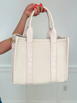 Groove into style with the Woven in Time Faux Leather Tote Bag & Wallet Set! The woven leather adds a touch of elegance, while the included wallet and detachable strap offer convenience and versatility. Available in 6 stunning colors. Time to weave some fashion into your wardrobe!