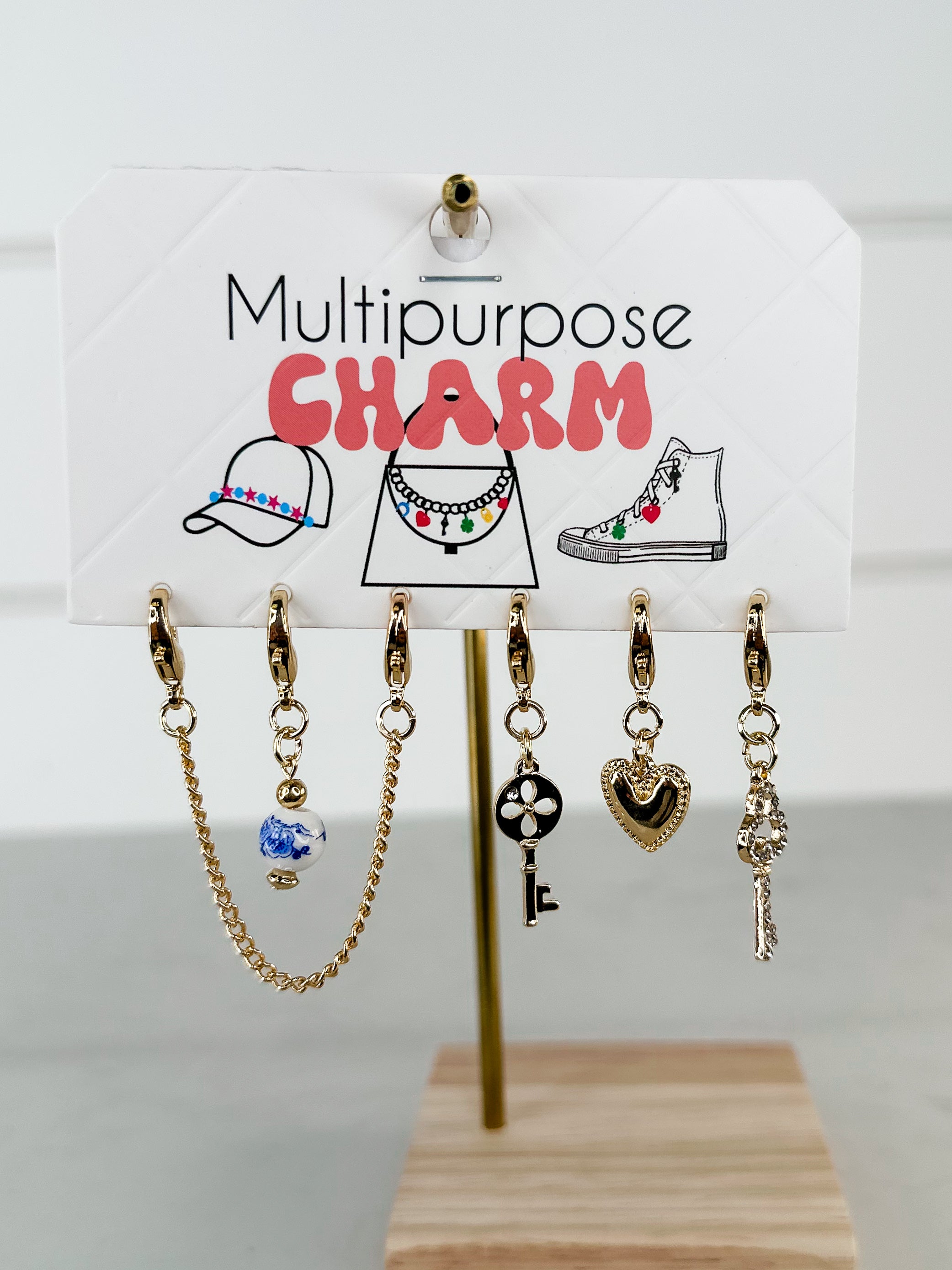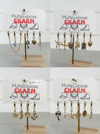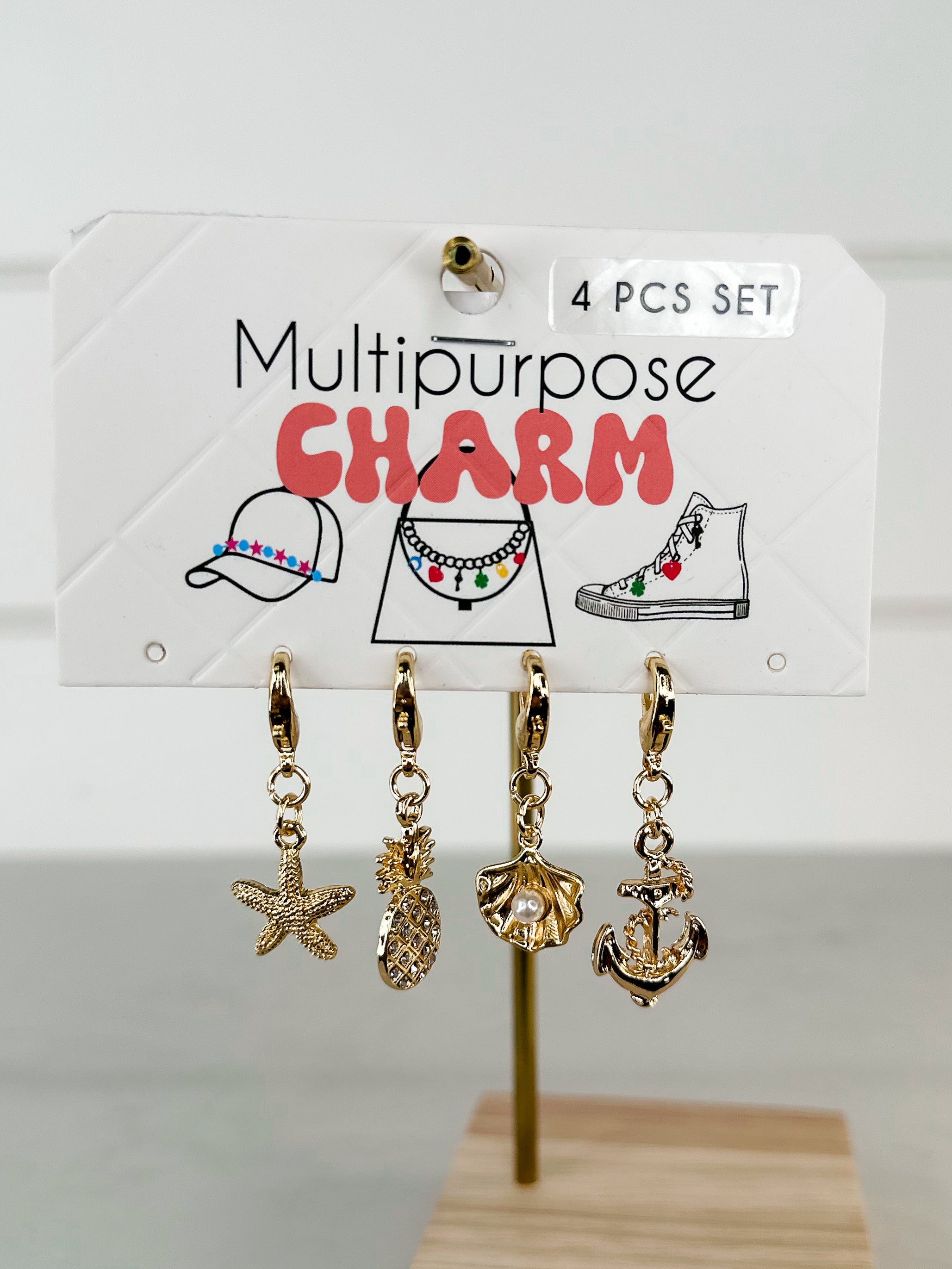 Add some extra personality to all of your accessories with the You are so Charming Gold Charms Set! These quirky charms feature lobster clasps for easy attachment to hats, belts, necklaces, bracelets, purses, or even shoes! Choose from 4 options and let your true self shine through!